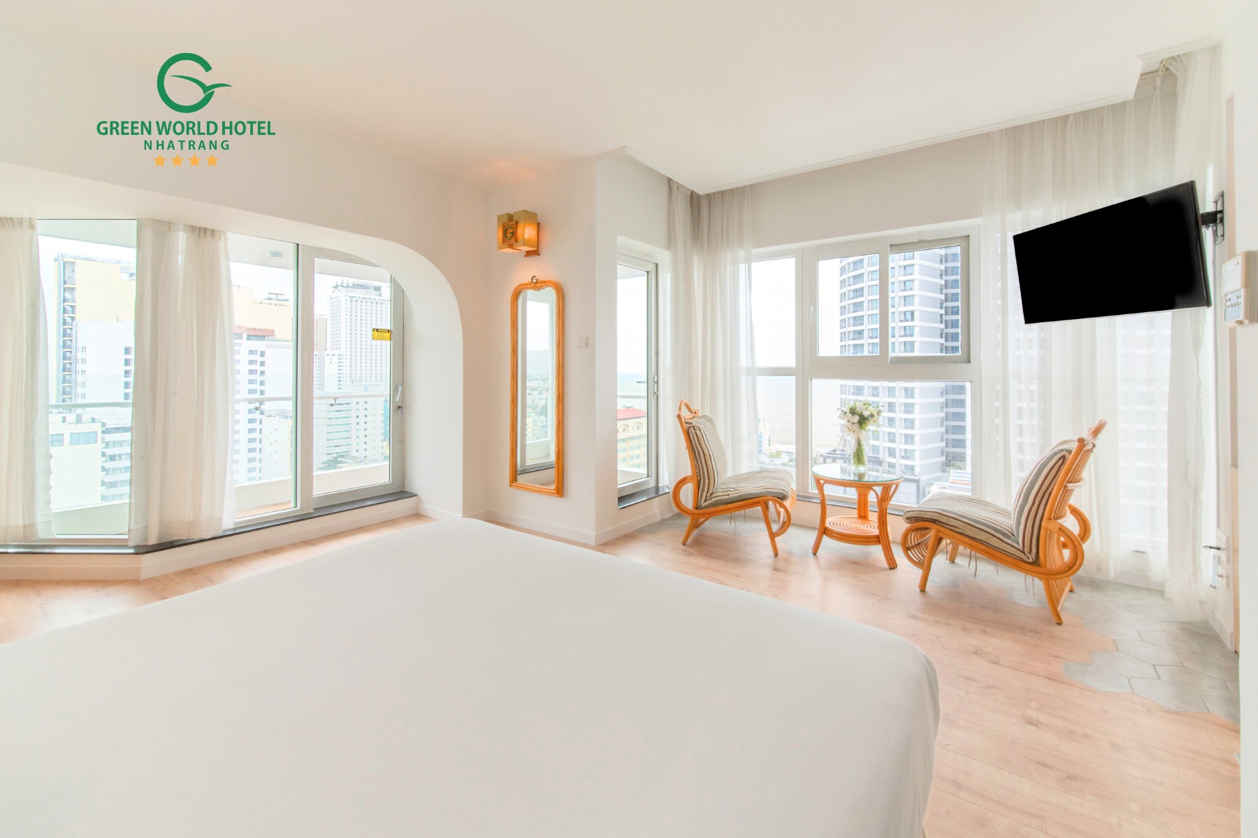 Tọa lạc ngay trung tâm thành phố biển Nha Trang, Green World Hotel Nha Trang là khách sạn 4 sao, tiêu chuẩn quốc tế. Bạn chỉ mất từ 3 phút đi bộ từ Green World Hotel Nha Trang để chiêm ngưỡng vẻ đẹp quyến rũ đặc biệt của Biển Nha Trang và giúp bạn tiếp cận các điểm tham quan lớn nhất của thành phố. Tất cả các phòng đều được trang bị đầy đủ tiện nghi hiện đại. Toàn bộ nội thất bên trong Green World Hotel Nha Trang đều được thiết kế bằng mây, gỗ nguyên bản và chất lượng cao.
