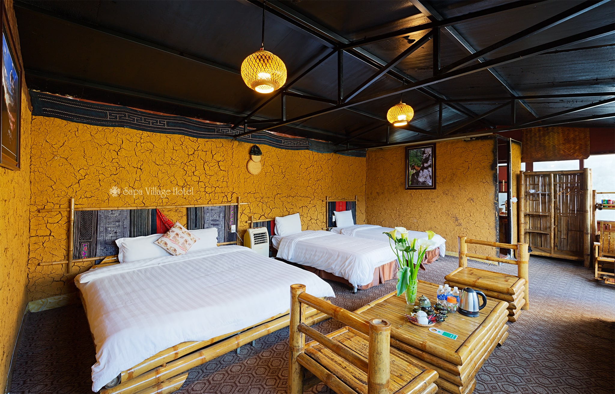 Khách sạn Sapa Village tọa lạc giữa lòng núi rừng hùng vĩ của Sapa, mang đến cho du khách một không gian nghỉ dưỡng yên bình và thoải mái. Với thiết kế mang đậm dấu ấn văn hóa bản địa, mỗi phòng nghỉ được bài trí tinh tế, trang nhã, mở ra khung cảnh tuyệt đẹp của núi non và những thửa ruộng bậc thang xanh mướt. Đội ngũ nhân viên thân thiện và chuyên nghiệp luôn sẵn lòng phục vụ, đảm bảo mang đến cho bạn những trải nghiệm tuyệt vời nhất. Tại Sapa Village, bạn không chỉ được tận hưởng sự thư giãn mà còn có cơ hội khám phá ẩm thực đặc sản và văn hóa độc đáo của vùng đất này. Hãy đến và cảm nhận sự ấm áp, gần gũi như chính ngôi nhà của mình!